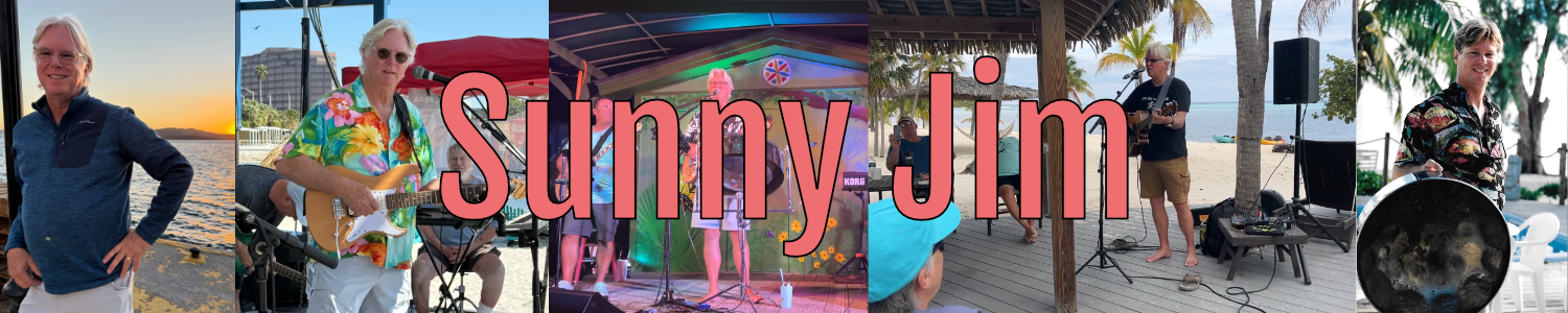 Sunny Jim has published 11 CDs, 9 studio recordings and 2 live performances. They include; Postcards from Seven Mile Beach, Life in the Laidback Lane, Sandbar Serenade, Tropical Trader, Escape Artist, Sky Sand Water Moon, Tropicool, KISS, Flotsam and Jetsam, Rum Shoes and It’s Still Summer Somewhere.